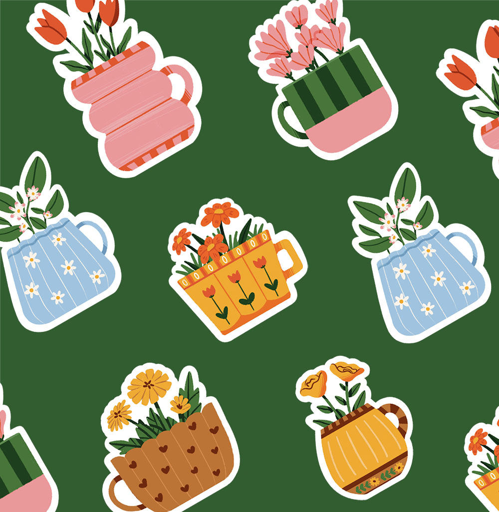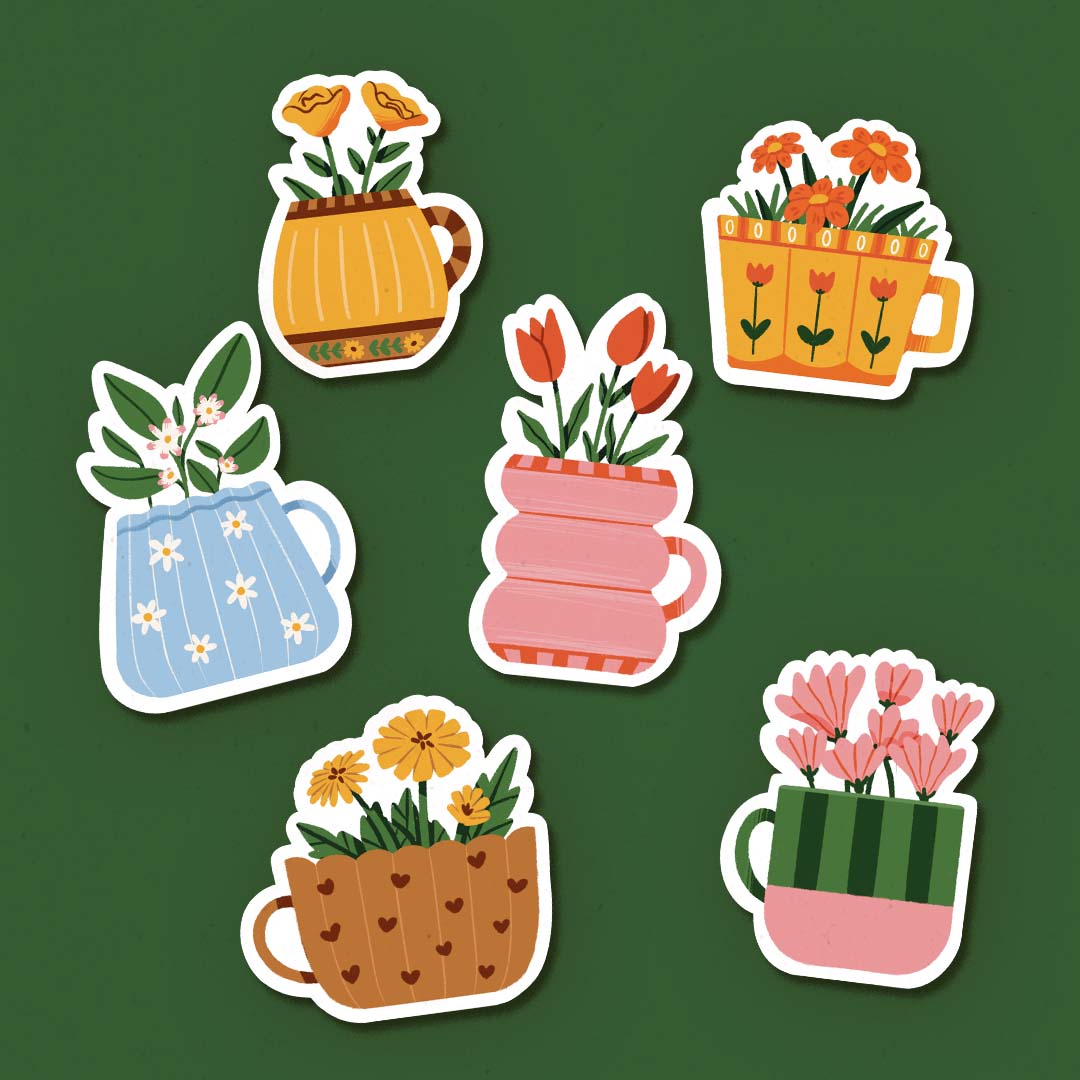 Pack de 6 Stickers « Tasses fleuries »